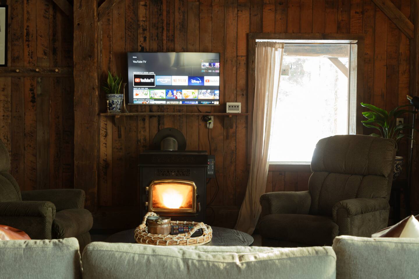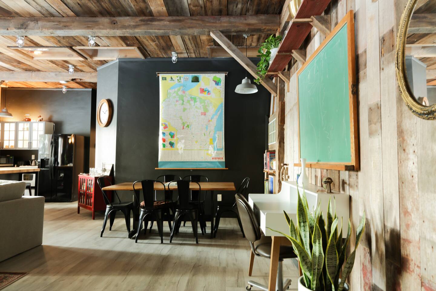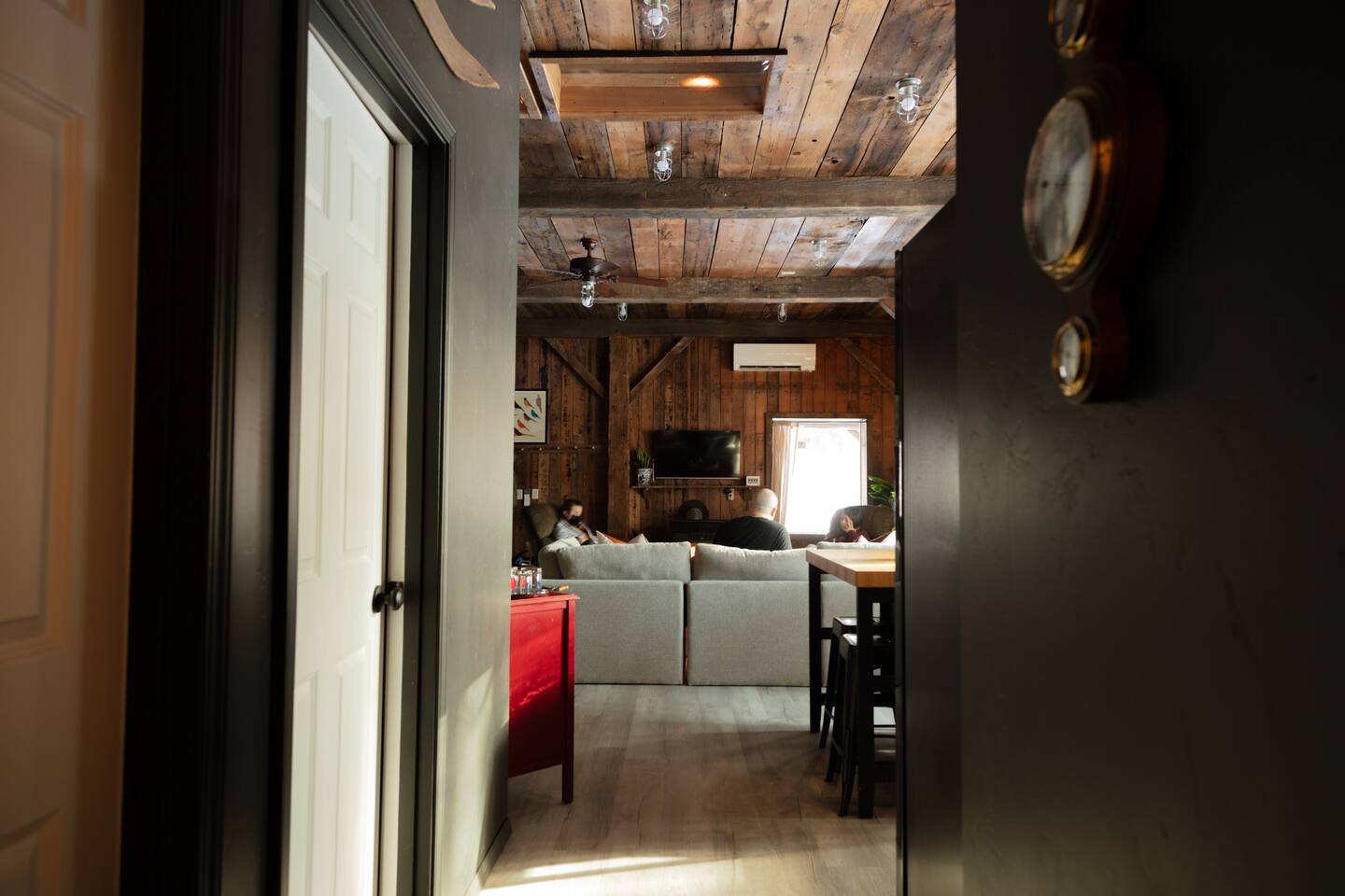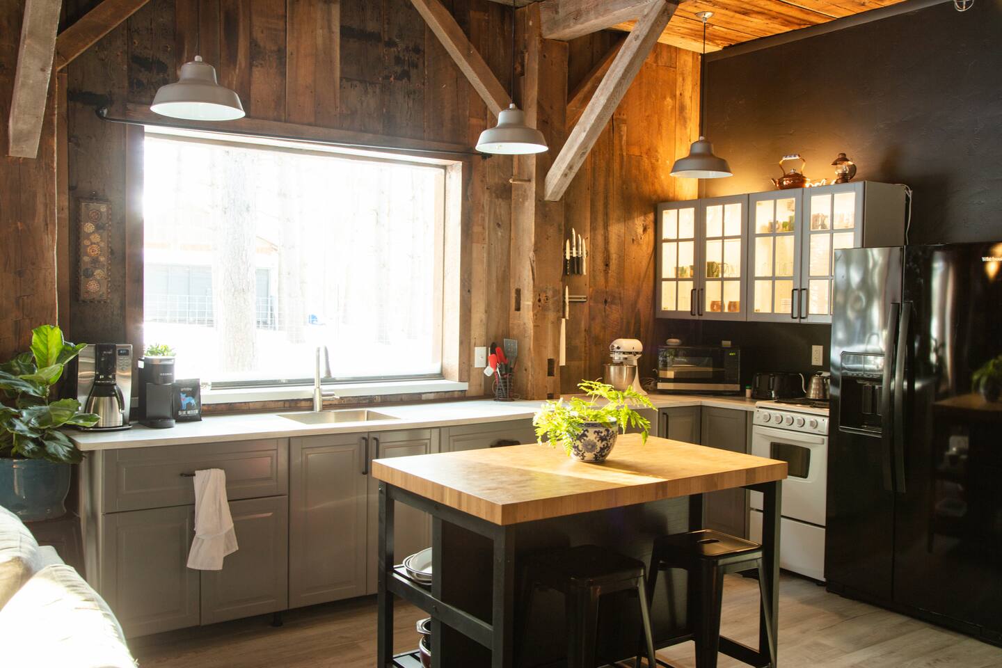This two-bedroom home is 1000 square feet and can sleep 5 comfortably. One queen bed, a full bed, and a large comfortable sofa are perfect for a family, couple getaway, or friend's trip. The barn has been completely restored to feel brand new while retaining its old charm. You'll have all the modern amenities you come to expect (fast wifi, toasty fireplace, smart TVs in every bedroom), while surrounded by gorgeously restored wood and 100 year ago craftsmanship. The full kitchen has an electric range, full fridge, local coffee, Keurig, toaster, KitchenAid blender (to bake fresh cookies!), and all the other kitchen items you'd need to cook a homemade meal. The island seats 2, and the dining room table 6. We'll supply each guest with some farm-fresh eggs from our chickens (when they’re laying them) to make a delicious breakfast. Inside, you can play with some of the available board games or puzzles, mix a drink at our bar station, listen to some of our supplied vinyl records (or bring your own!), play some of our nostalgic GameCube games, or watch the latest shows and movies with our smart TV. We have 4 adult and 2 children lifejackets. We don't suggest swimming in the water, but you can spend hours on our boats going up and down the river! This is a great place to stay in all four seasons - each has its own special moments to offer! Would you rather be snuggled up next to the fireplace in the winter or take a quiet canoe ride in the summer? While the Barndominium is in a forest, you're still a quick drive away from some of Wisconsin's best areas: 5 Minutes to Wiouwash Trail 15 Minutes to Oshkosh 20 Minutes to Appleton 40 Minutes to High Cliff State Park 45 Minutes to Lambeau Field