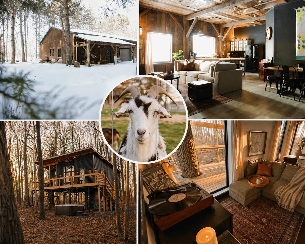 Book the entire Goat Creek Property: two separate units in one private 5+ acre forest, a 2-minute walk apart. Sleep up to 9 between a restored 100-year-old barn and a brand-new treehouse perched in the trees. Each has its own hot tub! Paddle the creek by kayak or canoe, gather around the bonfire, meet the friendly goats, and spot deer (including rare albino ones!) under incredible Wisconsin stars. Unplug, reconnect, and make memories together.