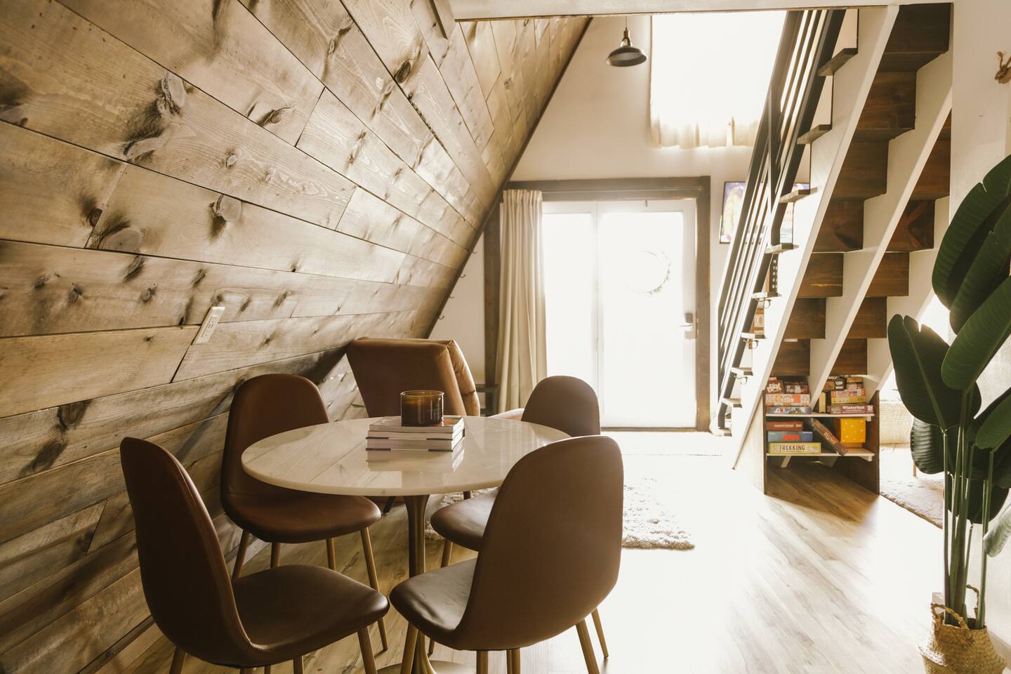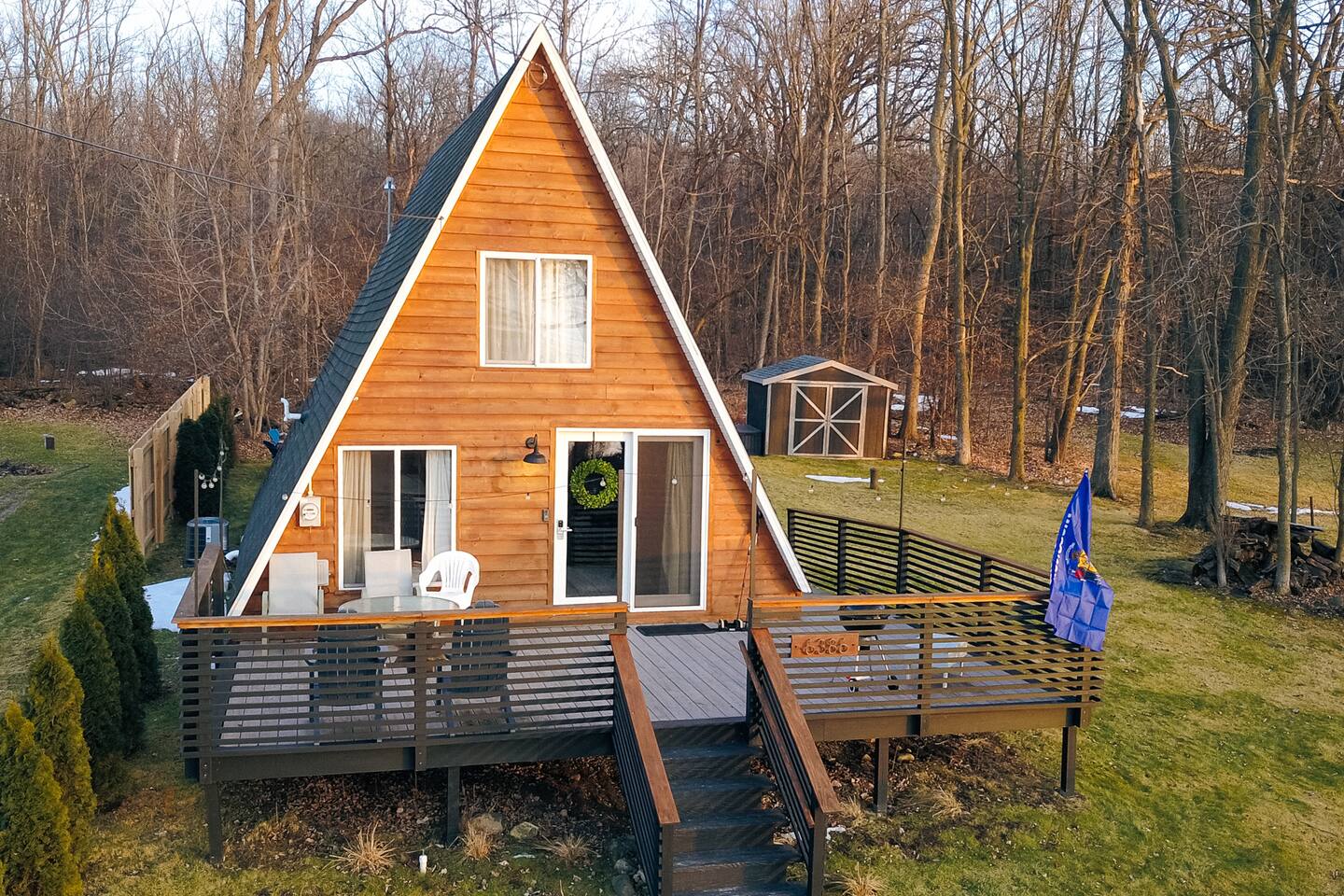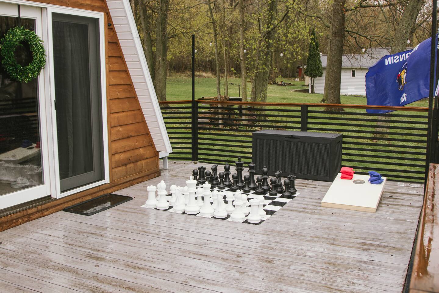 The A-Frame has been restored to feel brand new while retaining its old charm. You'll have all the modern amenities you come to expect (fast wifi, smart TVs), while surrounded by character. The full kitchen has an electric range, a full fridge, coffee, Keurig, a toaster, and all the other kitchen items you'd need to cook a homemade meal. There is a 4-person dining room table. The upstairs bedroom is a up in the loft (down a hallway for privacy) with a queen bed, a smart TV, closet and dresser. The downstairs bedroom has a full bed, pinball machine, closet and dresser. This is a great place to stay in all four seasons - each has special moments! Would you instead snowshoe through the state park in the winter or jump into the lake from the beach in the summer? With its central location, you have the flexibility to decide how to spend your time. Whether you want to immerse yourself in nature at the picturesque state park, take to the water, or indulge in some shopping in Appleton, the options are endless. For a night out, catch a Broadway performance at the Performing Arts Center, or experience the vibrant nightlife in downtown Appleton, all of which are within a 30-minute radius. This two-bedroom home is about 1000 square feet with a queen bed, a full bed, and a large comfortable sofa perfect for a family, couple's getaway, or friend's trip. ON-PROPERTY ACTIVITIES: • Smokeless Fire Pit with extendable s'more sticks for roasting • Private Arcade with Star Wars Pinball, X-Men, Terminator 2, and Space Invaders • Giant Chess Board • Hammock • Cornhole Boards • Charcoal Grill • Lake Views including gorgeous sunsets • Wildlife Watching: we spotted a bald eagle, large fox, and herd of deer right from the back window! • Large Board Game Collection • Puzzles NEARBY ACTIVITIES • Walking distance to Calumet County Park (hiking trails & more) • 5 minutes to the BEST breakfast/lunch restaurant! (Mud Creek Coffee) • 10 minutes to High Cliff State Park (hiking, beach, exploring & more) • 10 minutes to Charming local grocery store (Dick's Family Foods) • 10 minutes to multiple golf courses • 20 minutes to Downtown Appleton (restaurants, shopping, night life) • 20 minutes to one of Wisconsin’s largest shopping malls (Fox River Mall) • 20 minutes to Children's Museum • 20 minutes to Brillion State Wildlife Area • 30 Minutes to Green Bay • 40 Minutes to Packers Stadium Lambeau Field • 40 Minutes to TitleTown OTHER FUN ACTIVITIES NEARBY: Kayaking: There are super easy self-serve kayak rentals at both Calumet County Park and High Cliff State Park. Just download the RentFun app (for Calumet) or search “PaddleBreak” (for High Cliff) and you can unlock a kayak right from your phone. Beautiful views of the lake and cliffs — highly recommend! Biking: If you’re up for a short drive, Appleton Bicycle Shop rents bikes, or you can use Cloud of Goods to have bikes delivered right to you. High Cliff has great biking trails. Horseback Riding: The closest trail rides are at Lonely T Ranch (about 35 mins away) — they’re super friendly, but you’d need to call ahead.